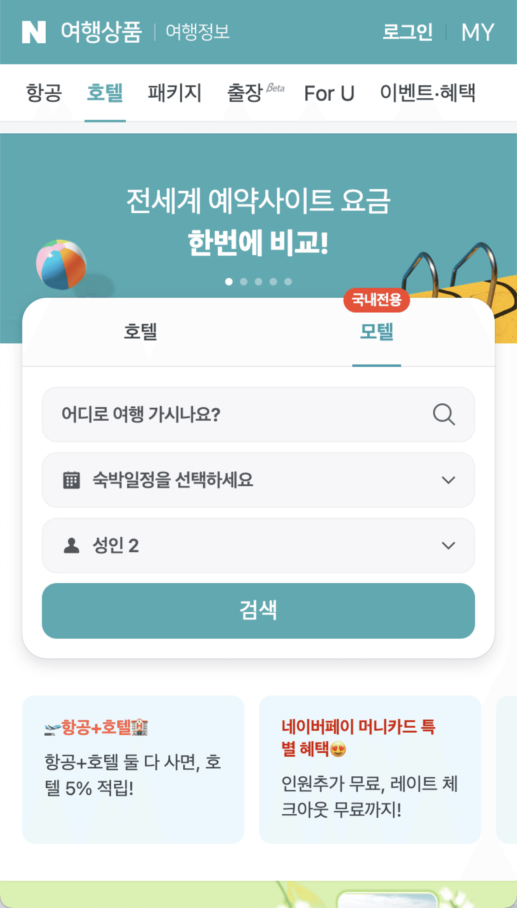 네이버 호텔 모텔탭에서