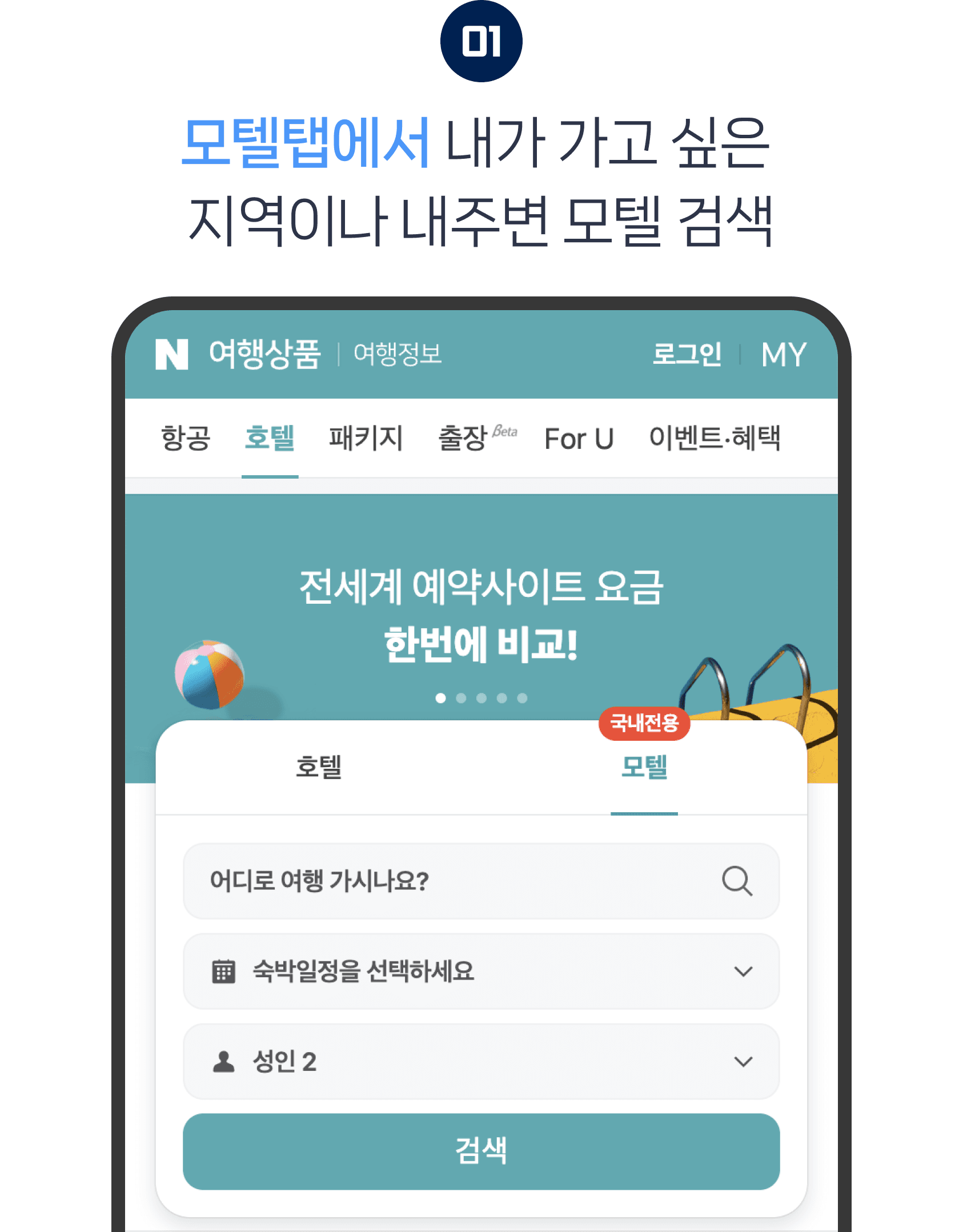 내가 가고 싶은 지역이나 내주변 모텔 검색