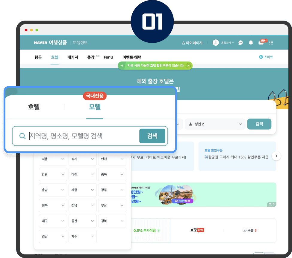 네이버 호텔 모텔탭에서 여기어때 모텔(숙박 또는 데이유즈)을