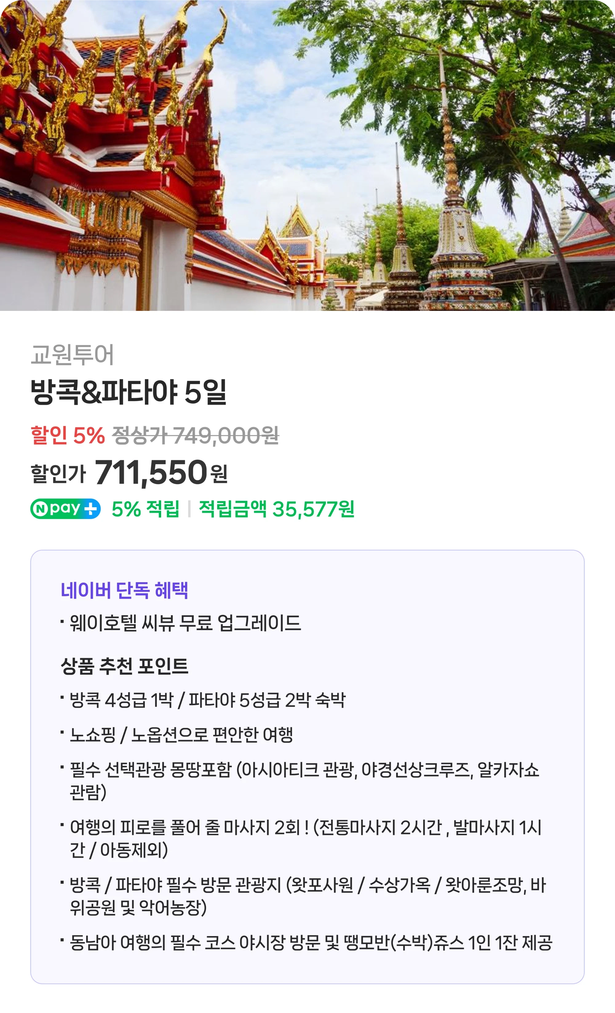 여행핫딜 방콕&파타야 패키지 자세히 보러가기