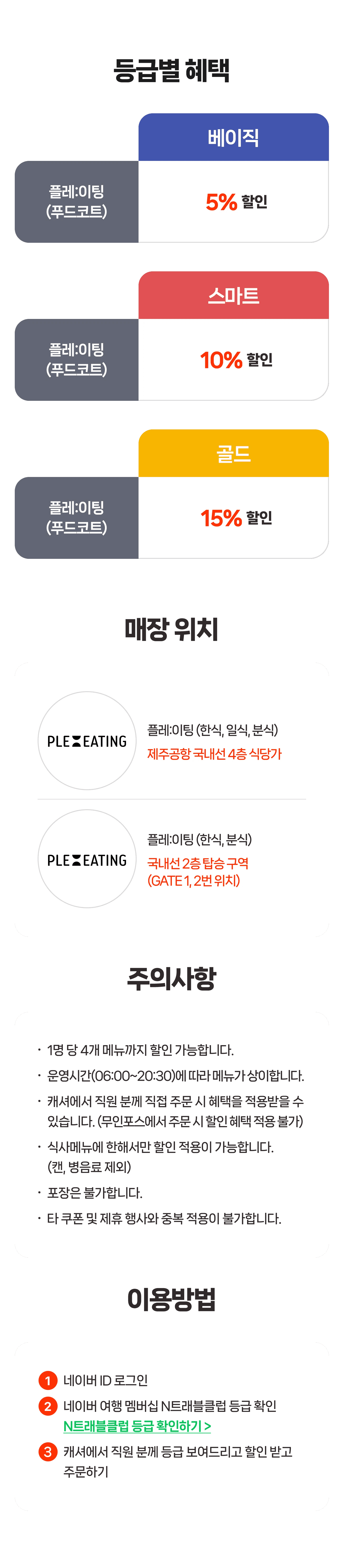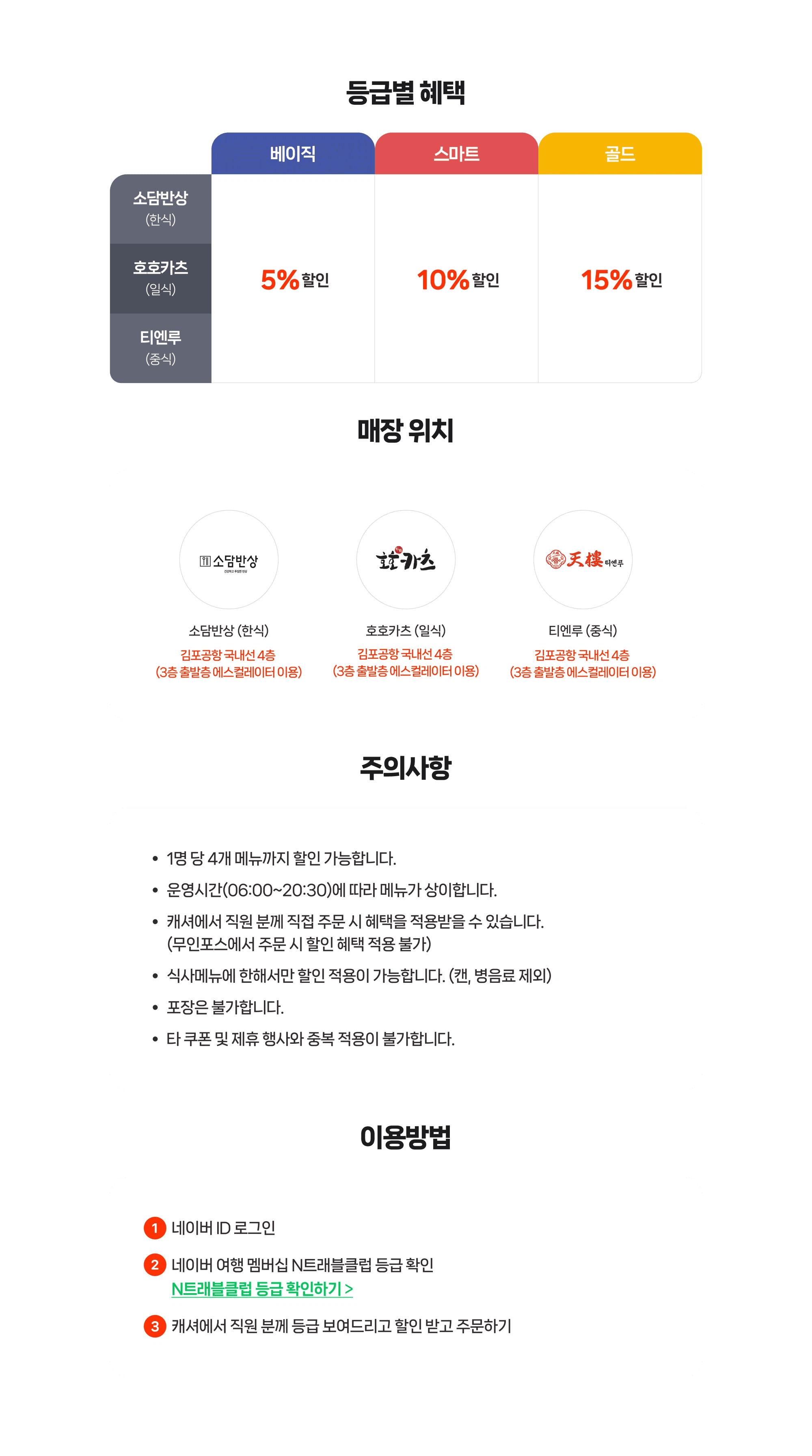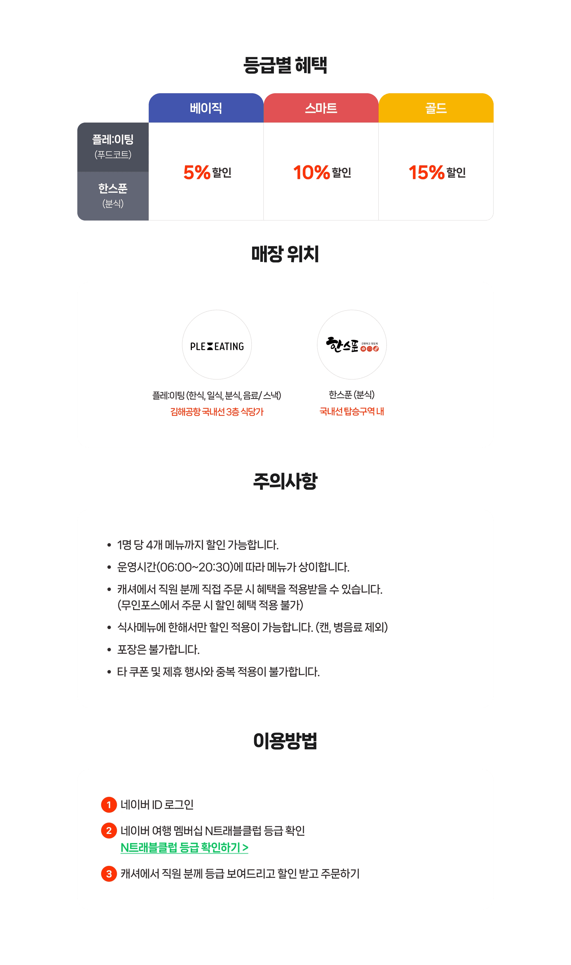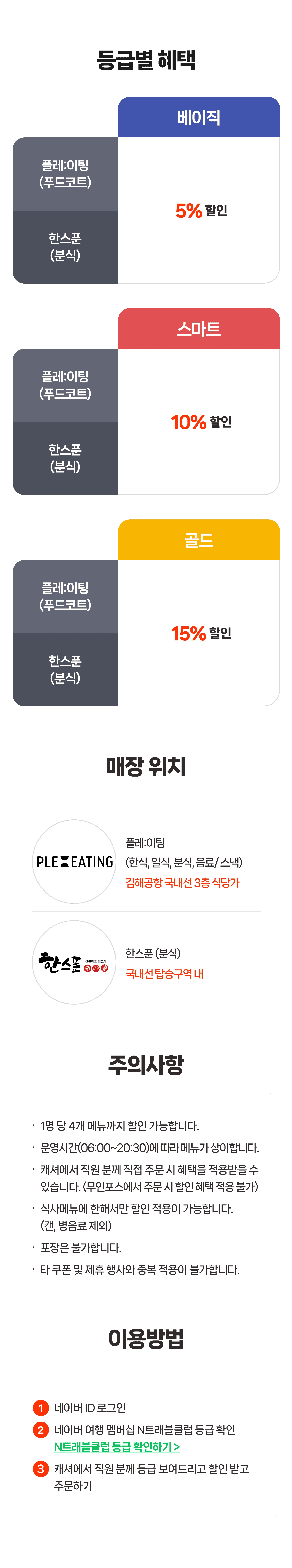 국내 공항 내 푸드코드 및 카페 등급별 최대 20% 할인