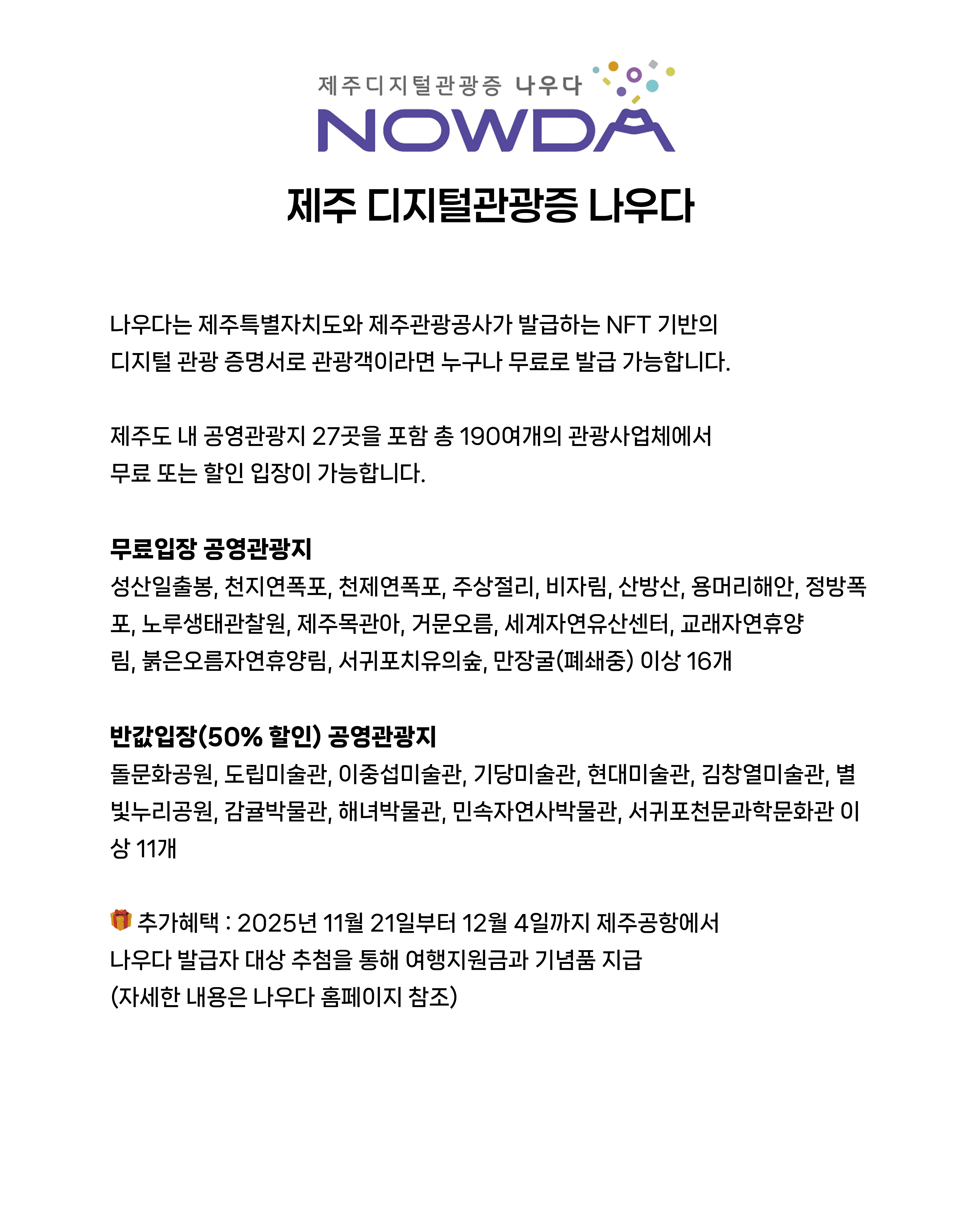 26/1/31 내에 제주디지털관광증 나우다 발급완료 (예약자 네이버 ID로)