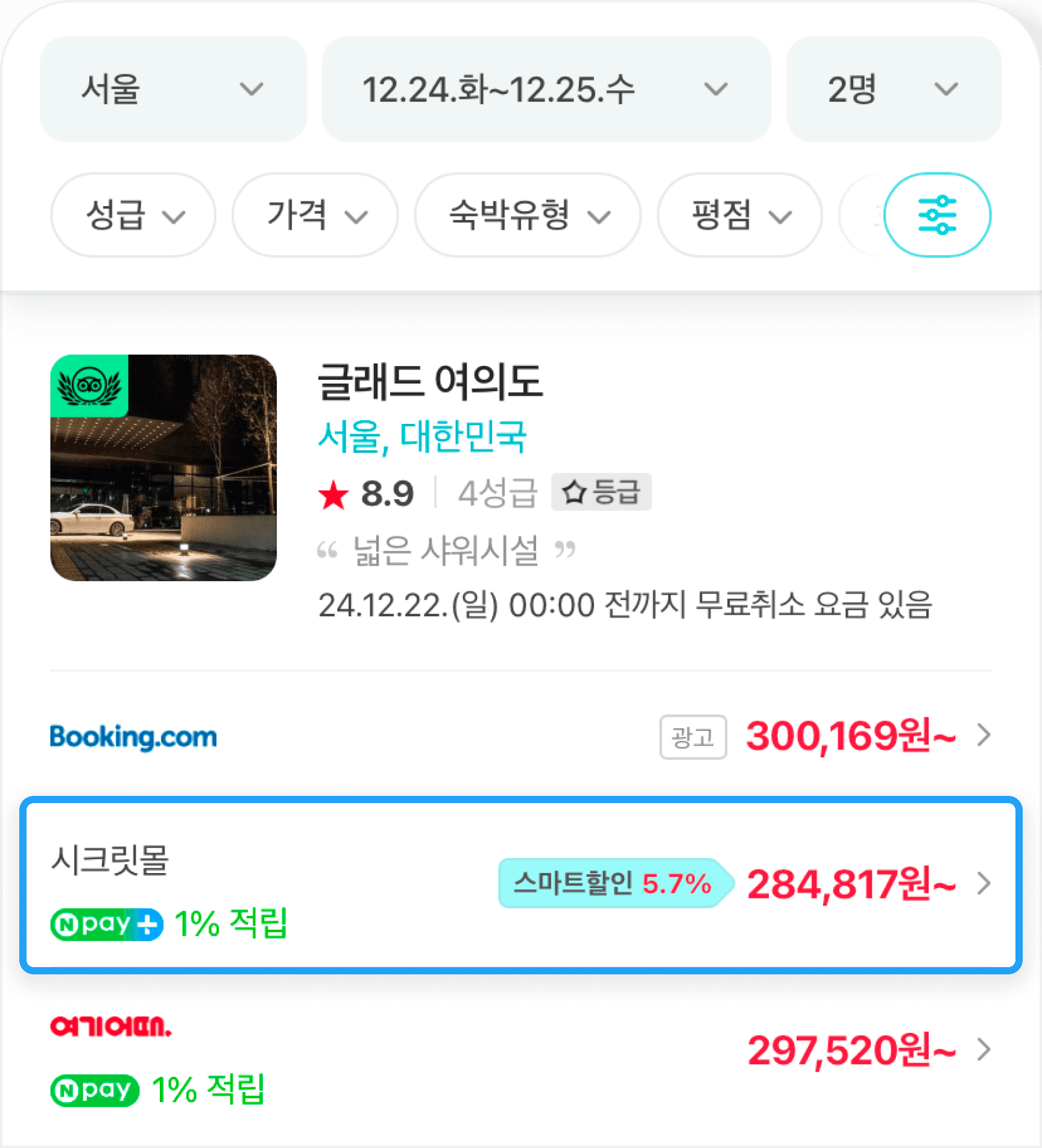 네이버페이 포인트 적립은 부킹닷컴에서 제공하는 유료화 기준 결제 금액(세금 및 봉사료 제외)을 원화로