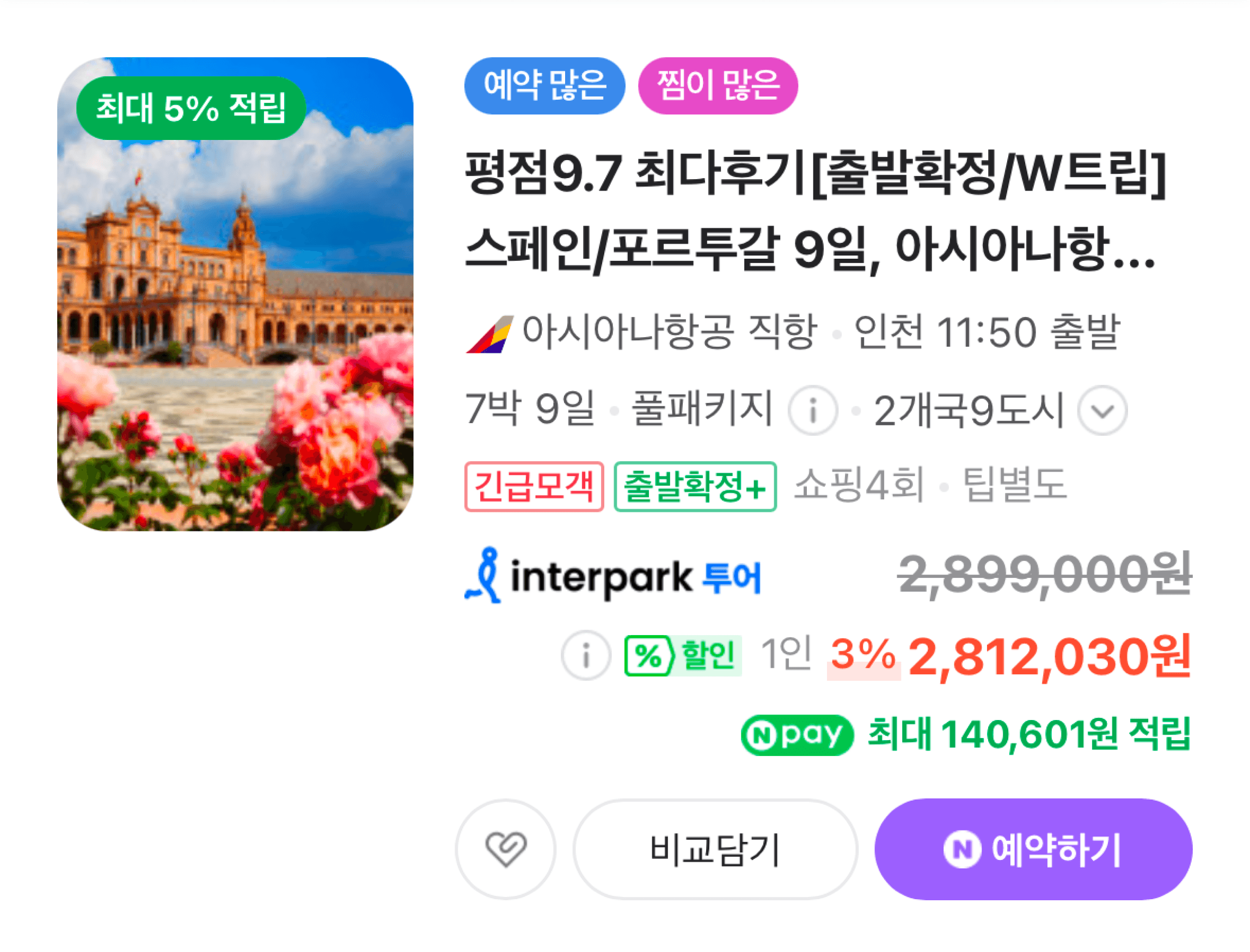 예약 인원이 최대 출발 인원을 초과할 경우 예약이 취소될 수 있습니다.