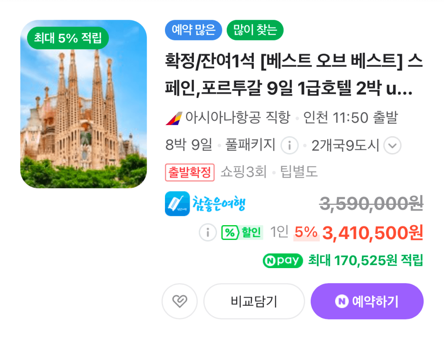 - ‘출발확정’ 상품 예약 후 예약자 일부가 취소되어 최소 출발 인원이 미충족되거나,