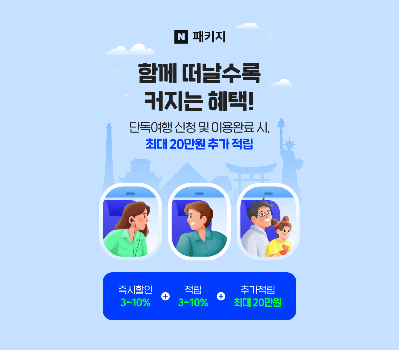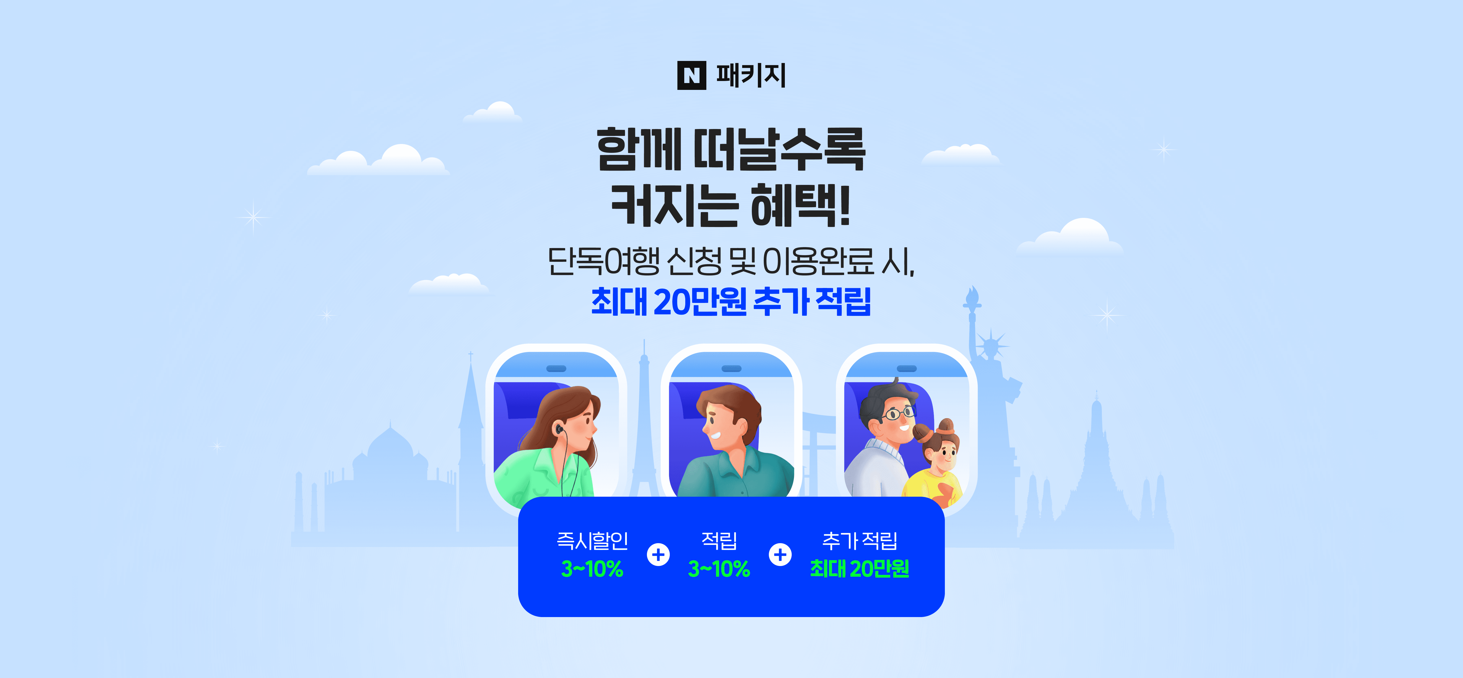 - 단독여행 신청 후 상담을 통해 안내받은 상품으로 예약해야 적립이 적용됩니다.