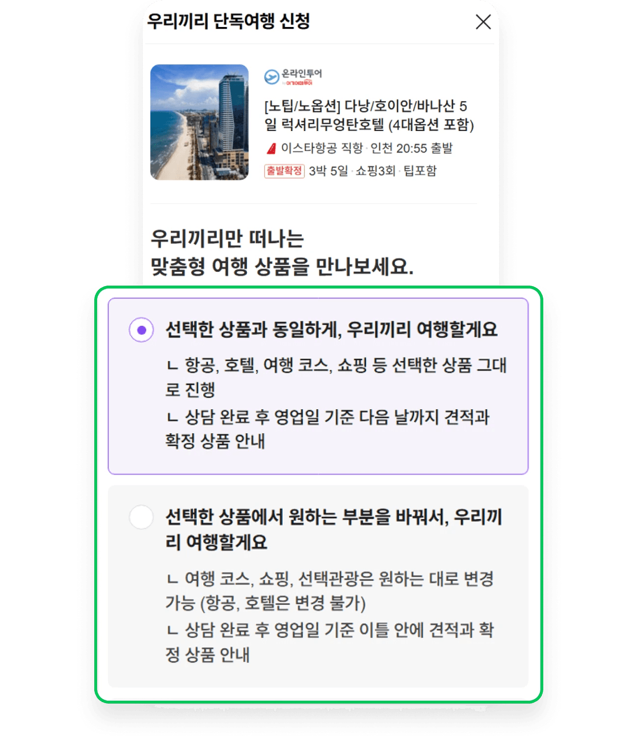 우리끼리 떠나고 싶은 상품을 선택한 뒤,
