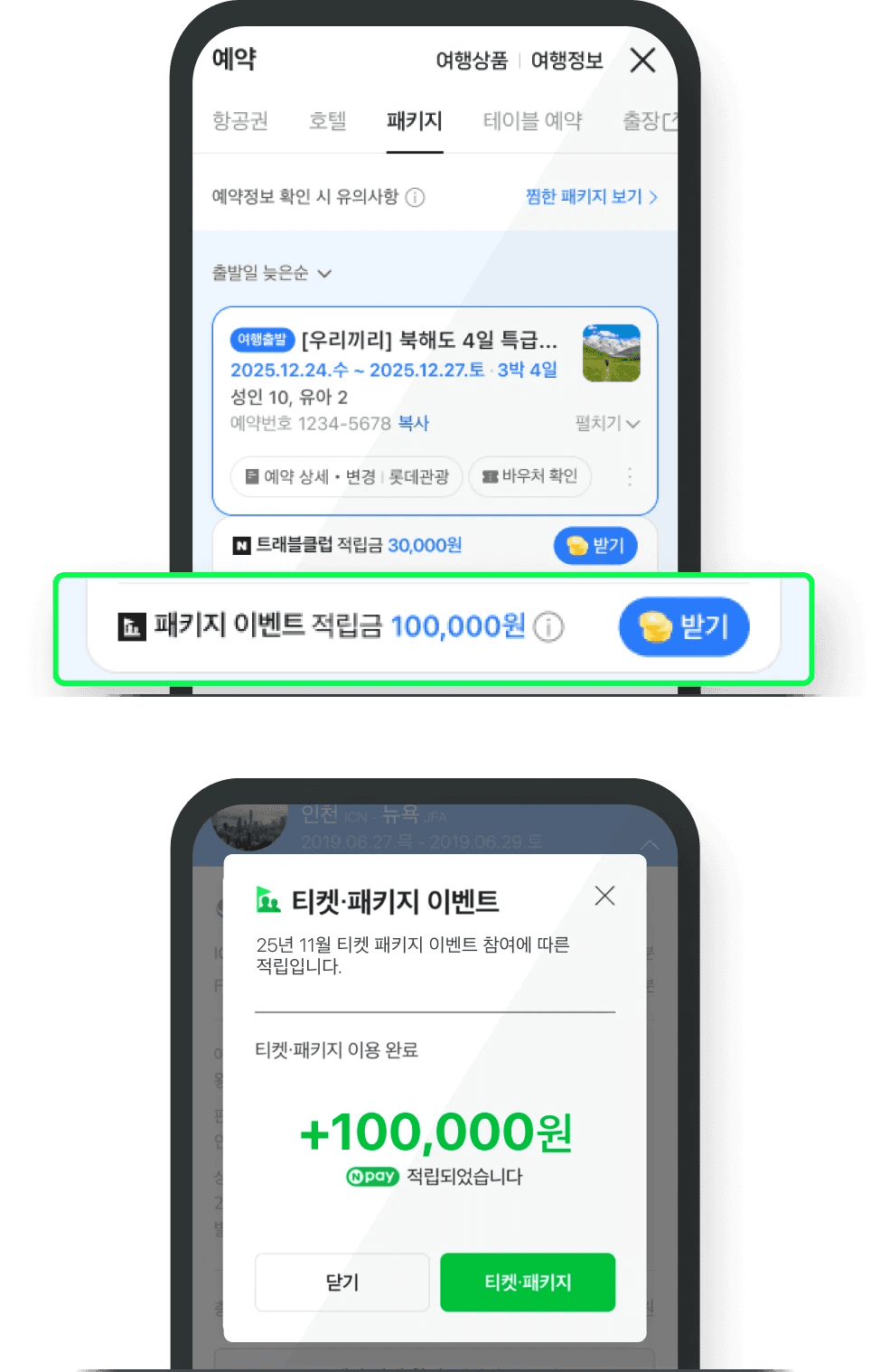 - 여행 종료 다음날부터 네이버 여행 마이페이지 예약 내역에 '적립금 받기' 버튼이 자동으로 노출됩니다.