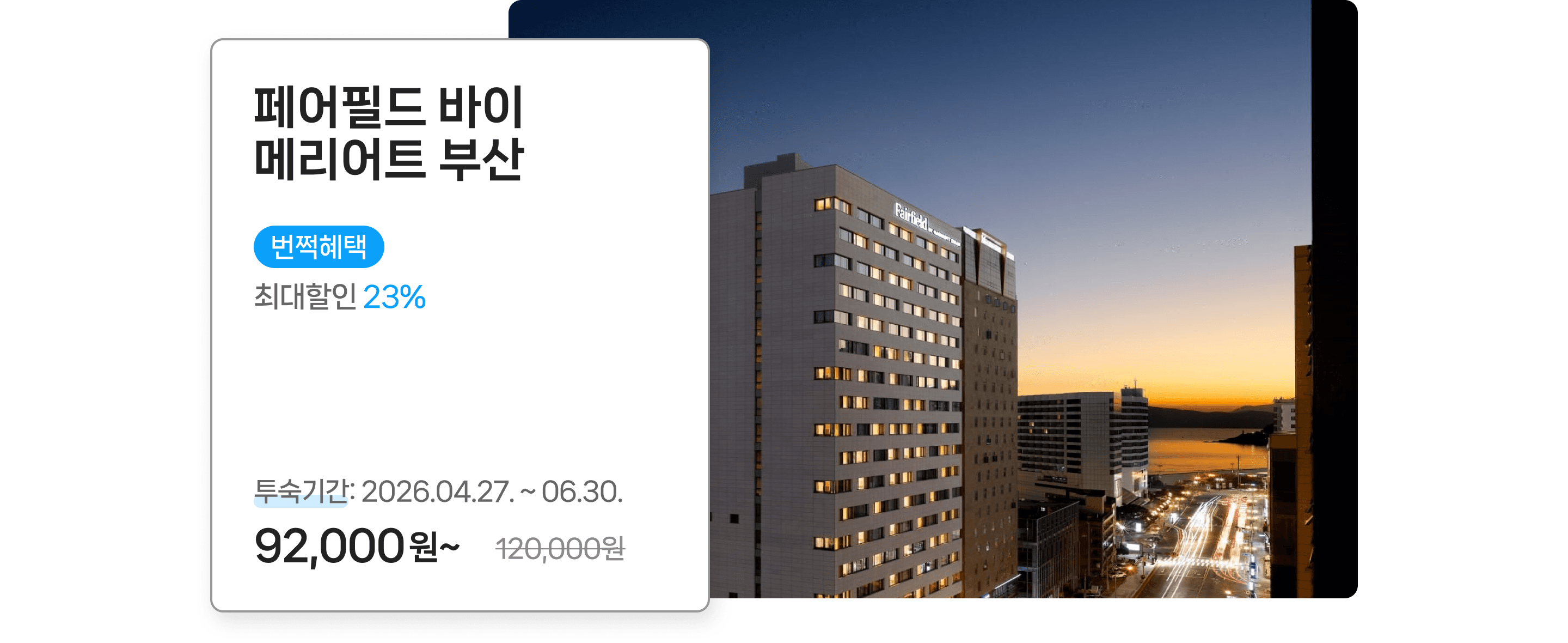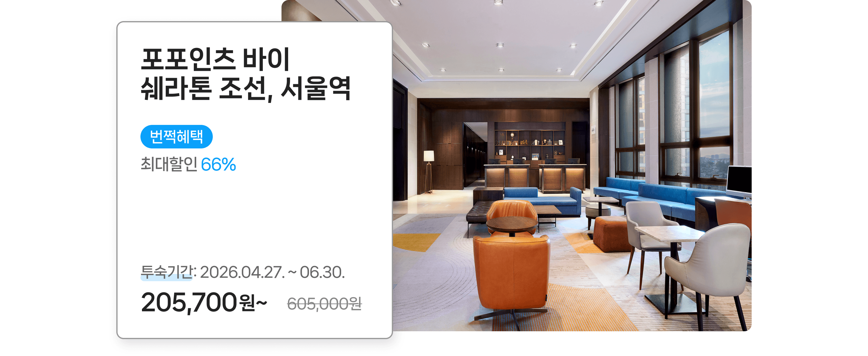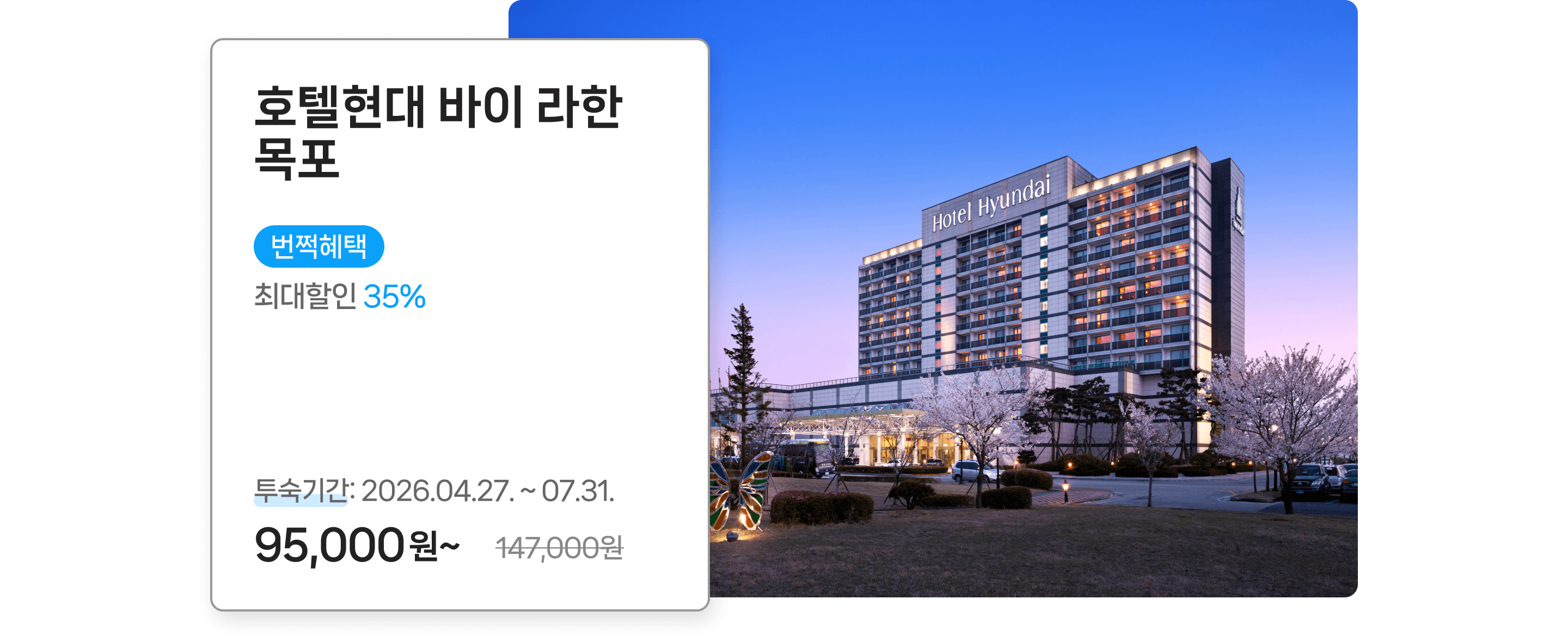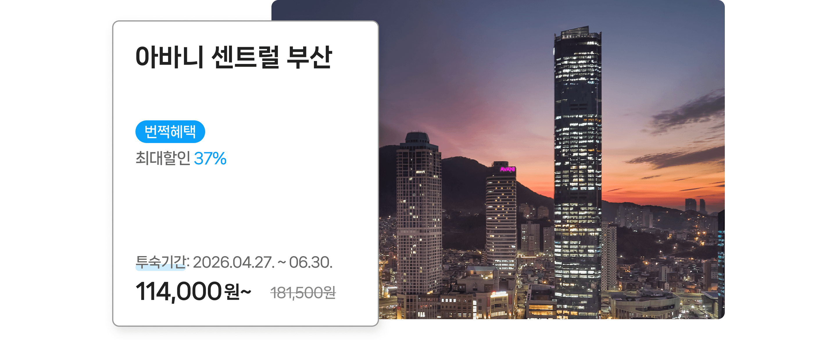 • 각 호텔의 일자별 예약 상황에 따라 객실 재고 및 특가 요금이 변경 또는 마감될 수 있습니다.