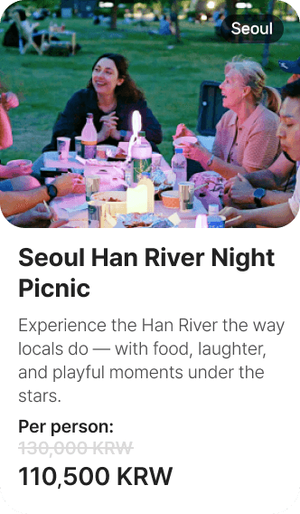 Experience the Han River the way locals do — with food, laughter, and playful moments under the stars.