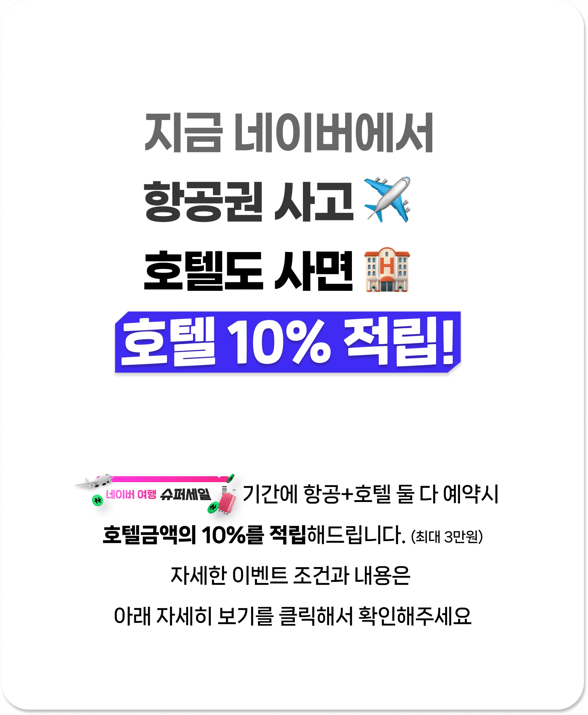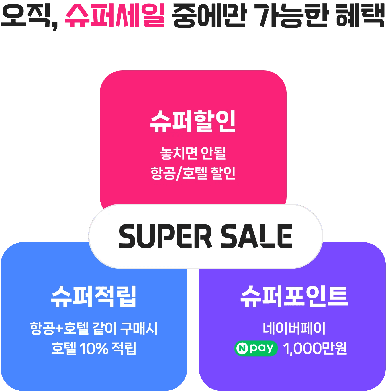 - 슈퍼적립 : 기존에 진행중인 항공+호텔 이벤트의 기준과 조건을 따릅니다.
