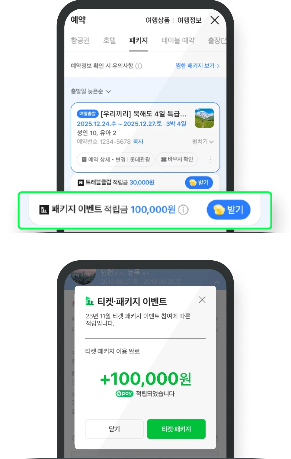 - 여행 종료 다음날부터 네이버 여행 마이페이지 예약 내역에